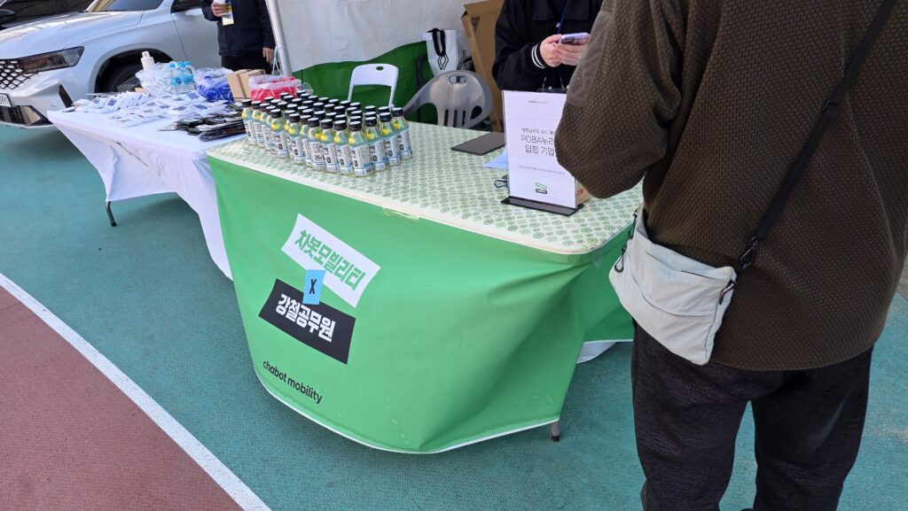 또, 한편에서는 음료 제공이 방문객의 체류 시간을 늘리는 데 큰 역할을 했습니다. 러닝 페스티벌이라는 특성상 음료 니즈가 높았던 만큼, 음료를 받기 위해 머무는 시간 동안 POP 자료나 차량을 살펴보는 흐름이 자연스럽게 이어졌습니다. 이는 상담 연결로 이어지는 효과적인 유입 동선이 되었습니다.