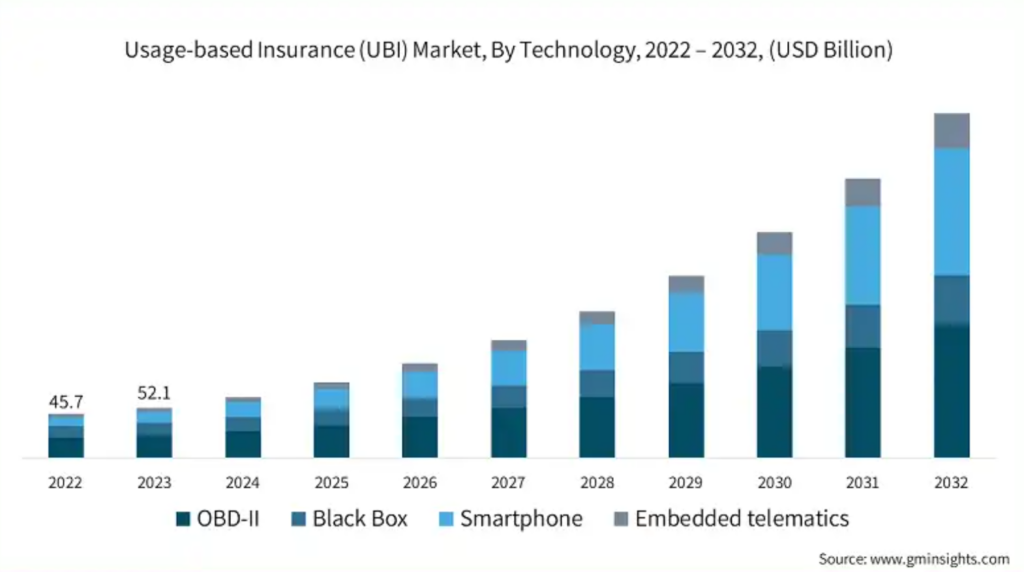 이러한 변화는 실제 수치로도 증명되고 있습니다. 글로벌 인슈어테크 시장은 2024년 기준 약 53억 달러 규모로 평가되었으며, 2025년부터 2030년대 초반까지 연평균 30%를 웃도는 고성장이 이어질 것으로 전망됩니다. 특히 자동차 보험 영역에서는 텔레매틱스 기술을 기반으로 한 사용량 기반 보험, 즉 UBI가 가장 빠르게 성장하고 있습니다. 일부 글로벌 리포트에서는 2025년 글로벌 UBI 시장을 약 398억 달러 규모로 평가하고, 2032년에는 2,600억 달러를 넘어설 수 있다고 전망하고 있습니다.